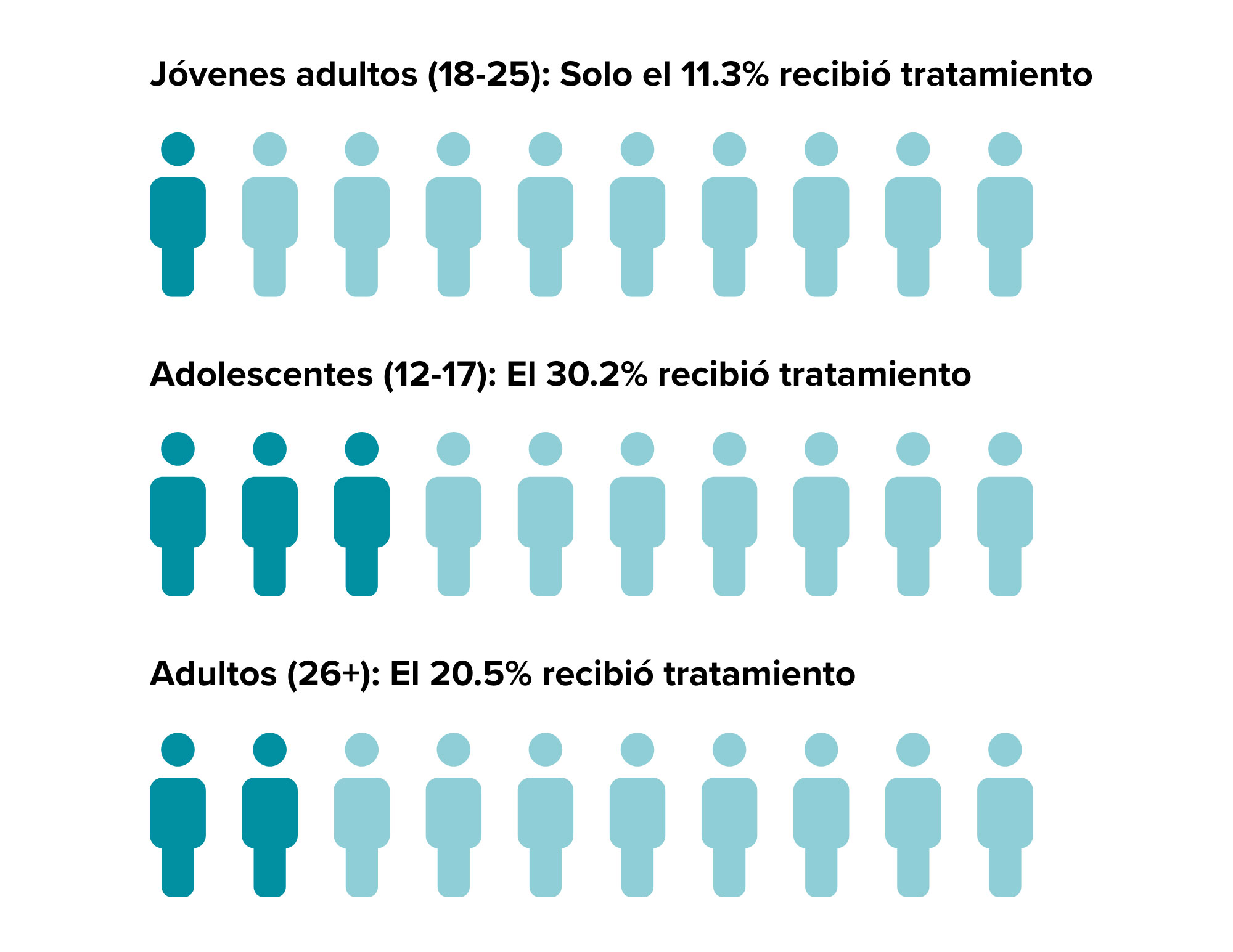 - Solo el 12.3% de las personas con SUD recibió tratamiento